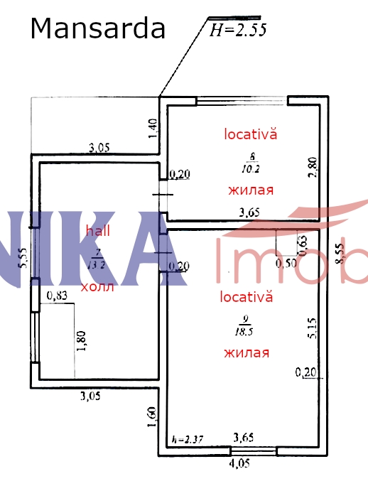 Mansardă - 2 camere și verandă, 42 mp.