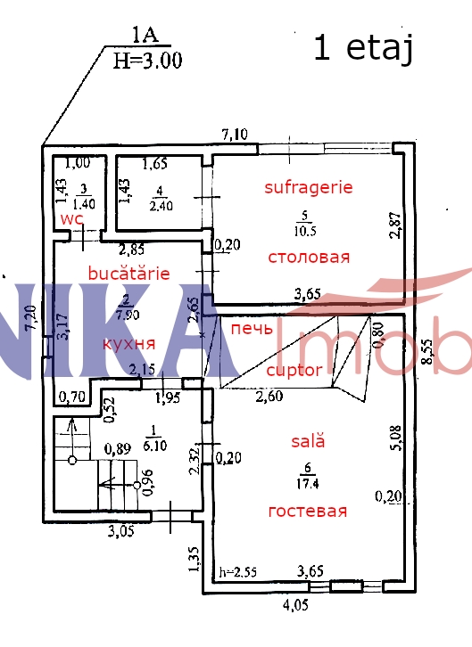 Etajul 1 - bucătărie, baie, cameră de oaspeți cu sobă rusească - 46 mp.