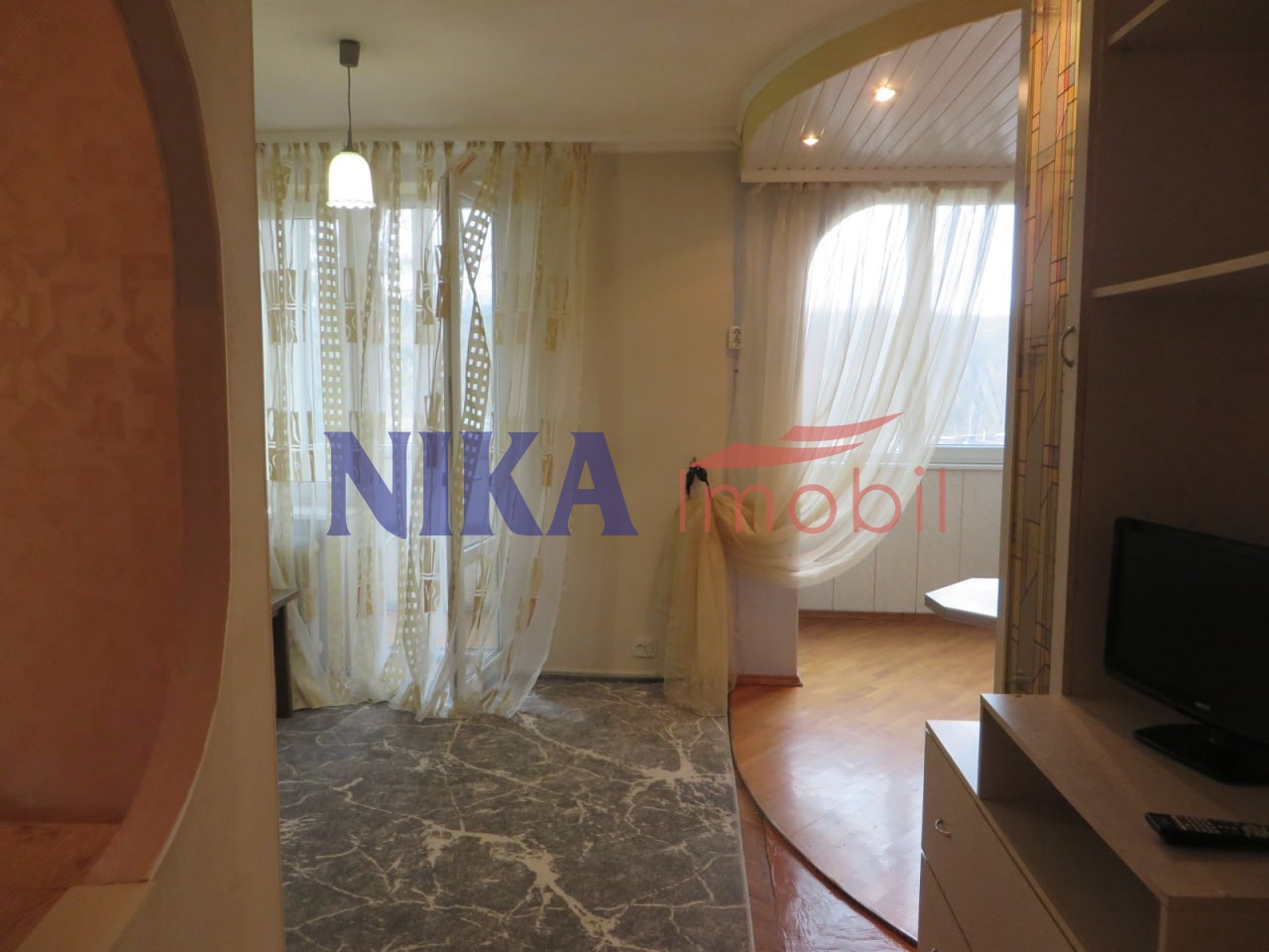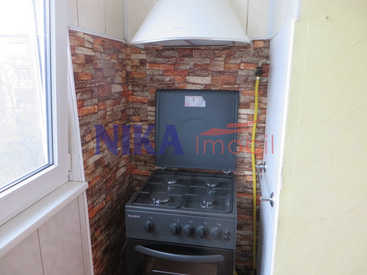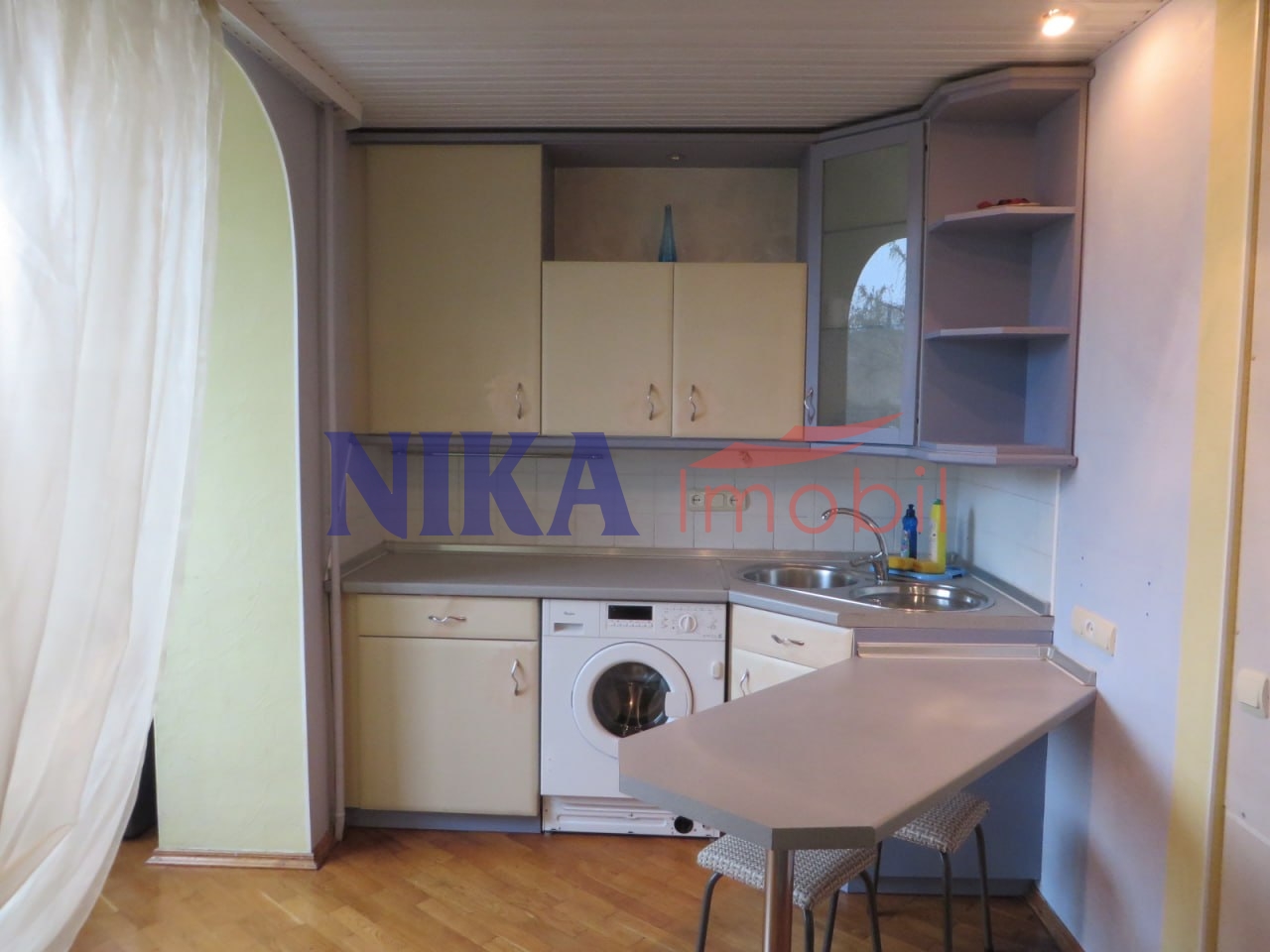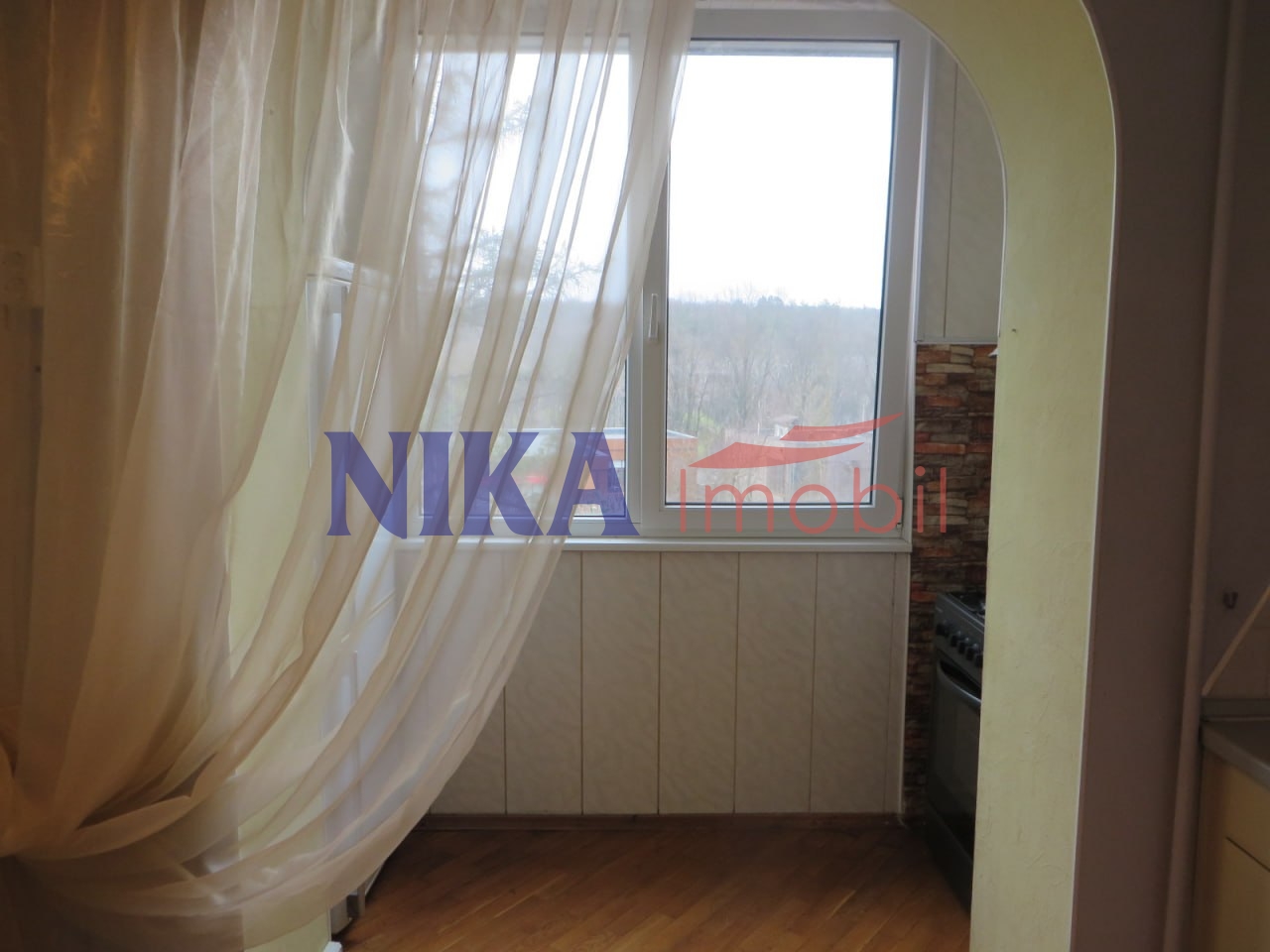 Bucătăria combinată cu balcon, living spațios și include bucătăria și dormitorul.